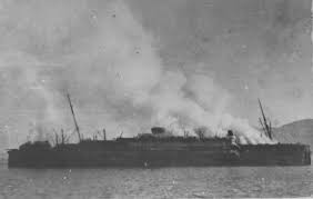 The badly damaged ship, now beached and burnt out, was salvaged in October 1941 and sent to Port Sudan where temporary repairs were carried out.